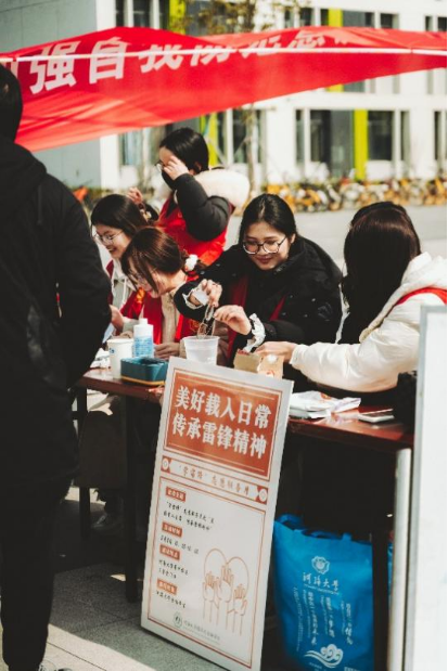 3月5日是学雷锋纪念日,也是中国青年志愿者服务日,为弘扬雷锋精神,倡导志愿服务理念,深入贯彻习近平总书记对深入开展学雷锋活动的重要指示精神,激发同学们帮助他人的热情,3月2日10:00-12:00博彩平台 团委青年志愿者服务部在博彩平台 常州校区三食堂门口举办了“美好载入日常,传承雷锋精神”学雷锋纪念日志愿服务活动。志愿者们秉持“奉献、友爱、互助、进步”的志愿者精神,传递爱心,积极奉献。