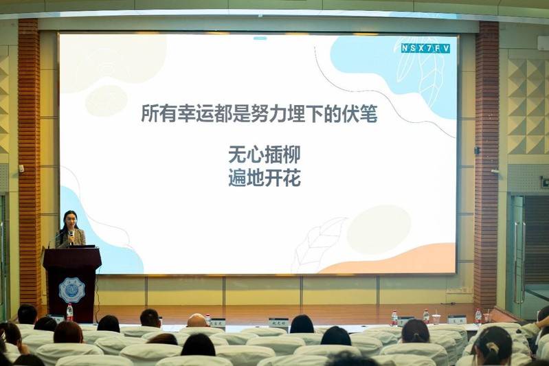 国际经济与贸易专业2015届于宇校友,现任南京市民政局综合法规处(行政审批服务处)二级主任科员。于宇校友分享了自己的大学经历,认为大学是有意义的“折腾”,并给出了相关建议以及推荐了相关读书app。当谈到“毕业干什么”这个话题时,于宇校友告诉同学们“为什么要做比怎么做更重要,要学会独立思辨,选择比努力更重要”。最后,她从选调生如何准备的角度,向同学们介绍了选调生的准入条件以及备考建议,于宇校友寄语同学们“所有幸运都是努力埋下的伏笔”,愿同学们在四年大学期间无心插的柳,都能遍地开花。