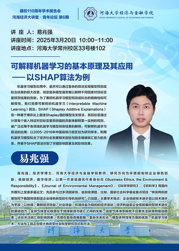 河海经济大讲堂·青年论坛第6期:可解释机器学习的基本原理及其应用——以SHAP算法为例