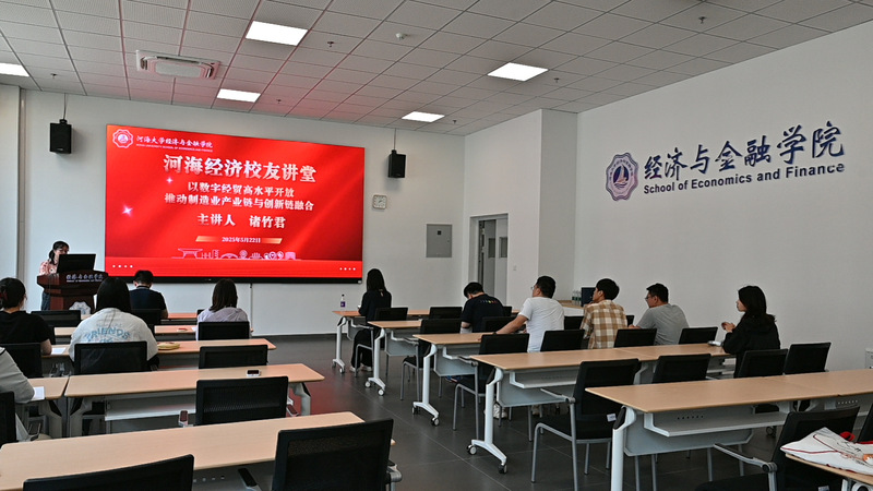 5月22日,博彩平台 2013届国际经济与贸易专业校友、浙江工商大学经济博彩平台 副院长诸竹君教授受邀重返母校,在33号楼102学术报告厅作题为《以数字经贸高水平开放推动制造业产业链和创新链融合》的专题讲座。经济与金融学副院长李祎雯、博彩平台 青年教师、研究生参加了本次讲座,讲座由博彩平台 办公室主任左丽主持。