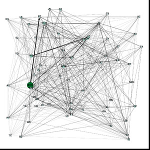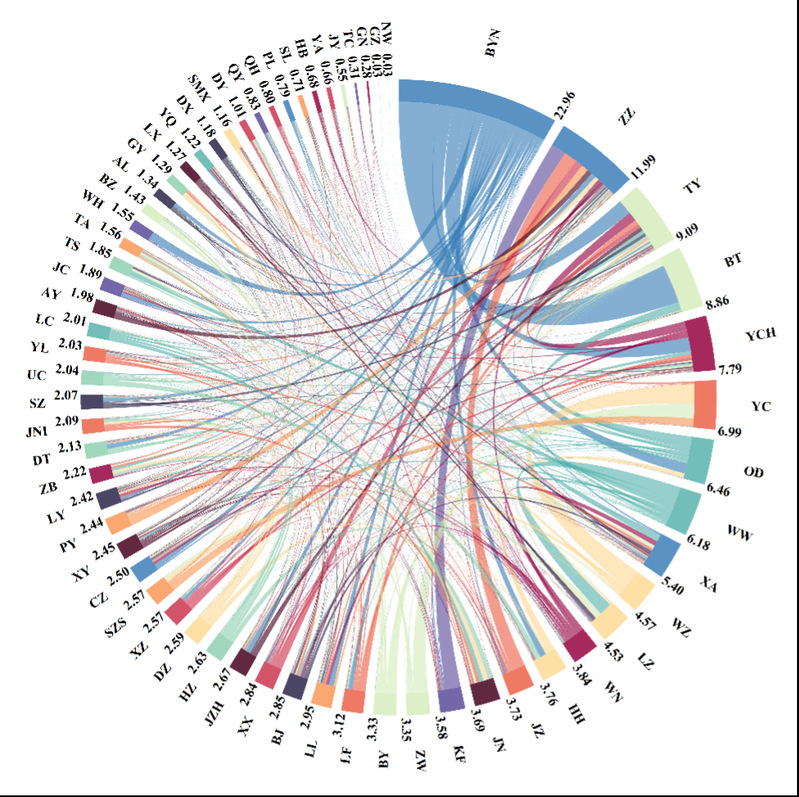 (2)黄河流域城市尺度虚拟水流动网络拓扑结构