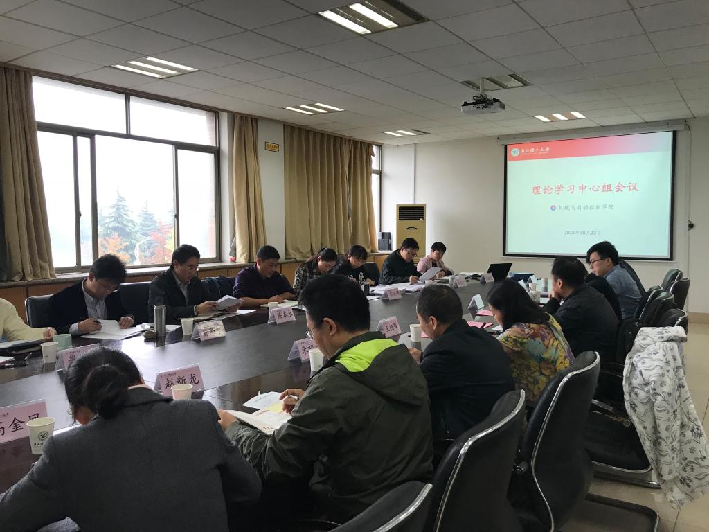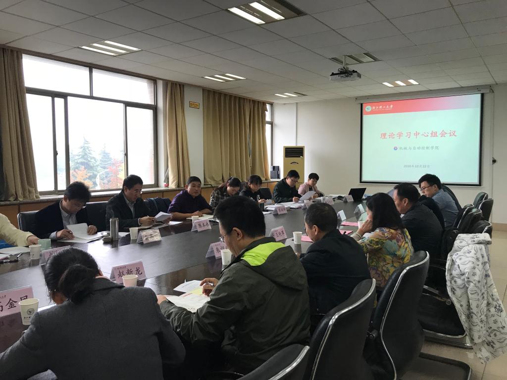 10月22日上午,机械与自动控制博彩平台-10大博彩平台网 党委理论学习中心组学习会在博彩平台-10大博彩平台网 会议室召开。参加此次学习会的有博彩平台-10大博彩平台网 党委书记潘海鹏、院长兼副书记陈本永、副书记苏丽辉、副院长俞高红、副院长胡明、副院长鲁玉军、党委委员吴震宇以及各系、中心、办公室主任、教工党支部书记等。会议由潘海鹏主持。