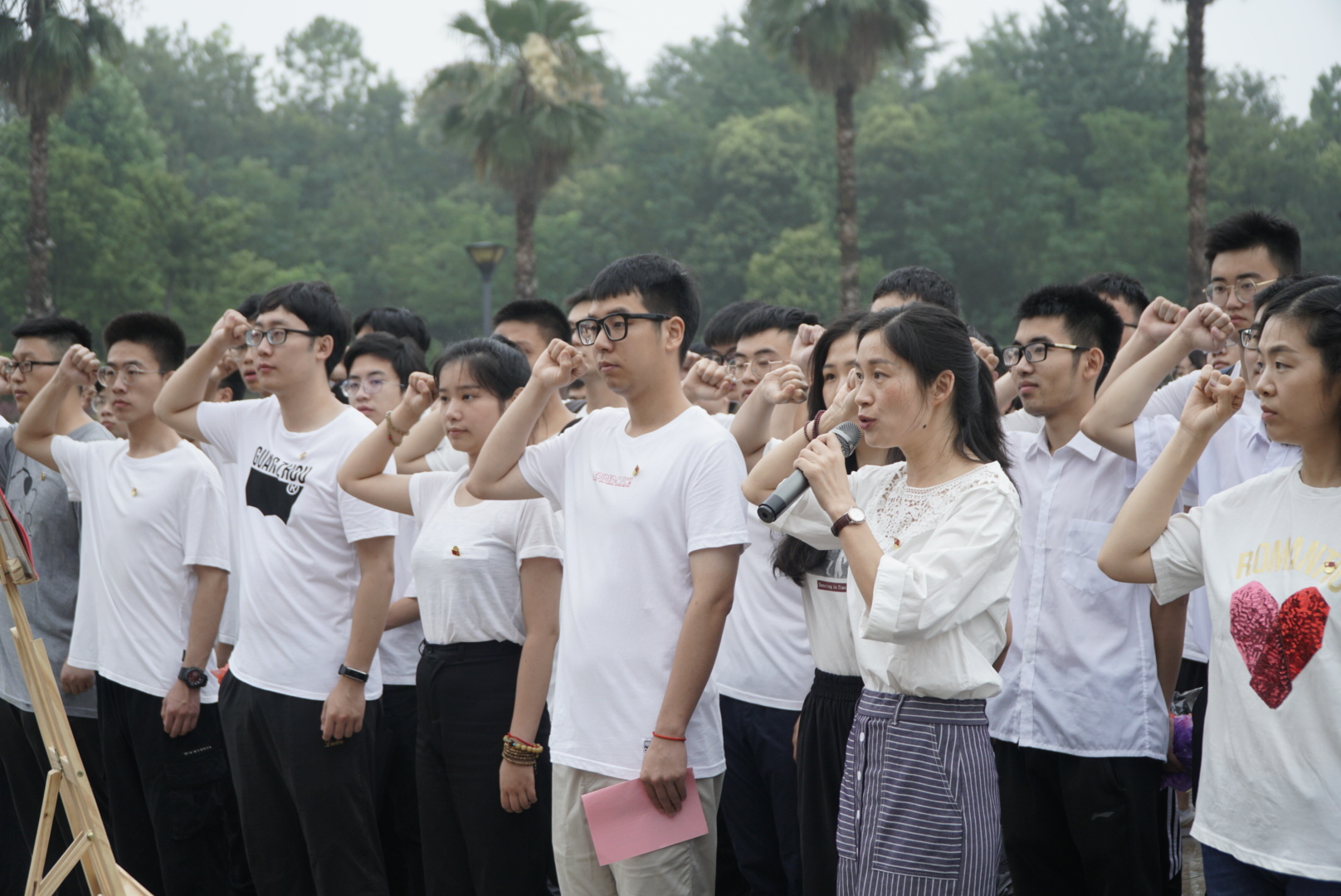 党委副书记苏丽辉,团委书记、学工办主任丁宁,各年级辅导员,新发展党员、学生党员代表以及暑期社会实践团成员等。仪式由丁宁主持。
