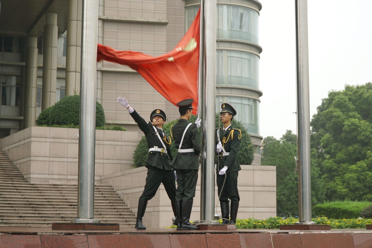 零星的小雨中,仪式正式开始。伴着激昂的《义勇军进行曲》,鲜艳的五星红旗缓缓上升,又一次飘扬在浙理上空。升旗仪式结束后,新党员进行庄严神圣的入党宣誓,由苏丽辉领誓。随后,党员代表们为各位新发展党员佩戴党员徽章。党的生日,少不了一首祝福的歌。同学们用一首《我爱你,中国》为党和祖国献上祝福。