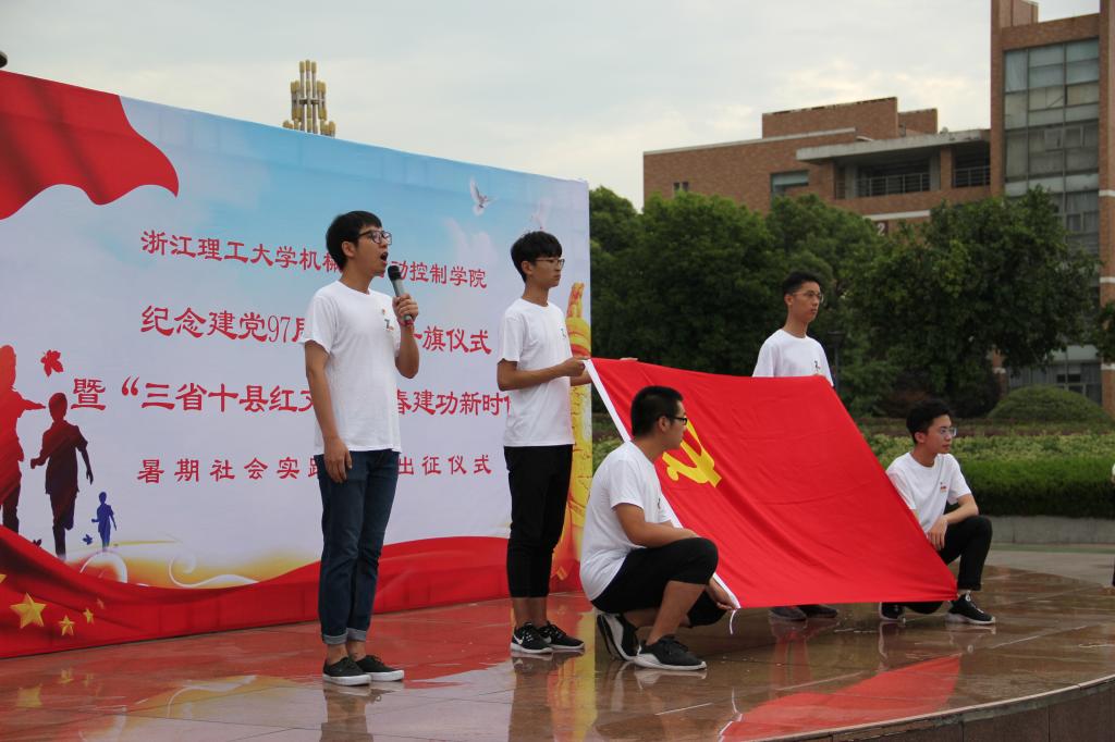 暑期社会实践团牢牢抓住红色文化基因,追寻红色文化足迹。一曲红歌过后,苏丽辉为实践团授旗,做庆祝建党97周年主题讲话,回顾党的光辉历程和博彩平台-10大博彩平台网