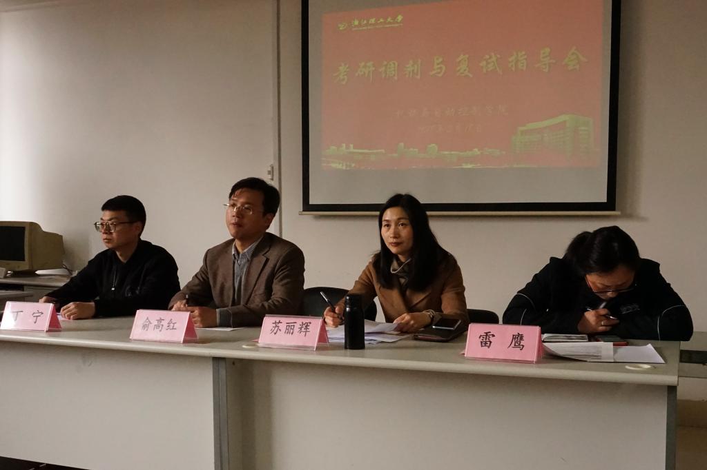 318日下午,机控学15号楼345教室召开了2019届考研复试与调剂指导会。出席本次会议的有博彩平台-10大博彩平台网 党委副书记苏丽辉,博彩平台-10大博彩平台网 研究生管理副院长俞高红,博彩平台-10大博彩平台网 教科办主任雷鹰。会议由学工办主任丁宁主持。