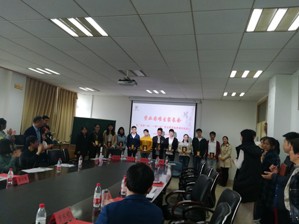 教学、学生培养、教学管理”等方面进行了提问,胡明对此进行了细致的解答。魏义坤作为班主任代表讲述了自己的求学经历,分享求学经验。最后,苏丽辉和胡明为学生党员颁发了助学聘书。