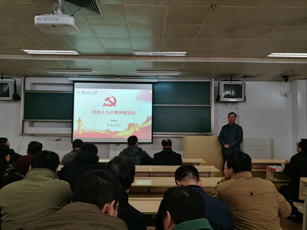 陈建勇校长给机控博彩平台-10大博彩平台网 全体教职工宣讲十九大精神