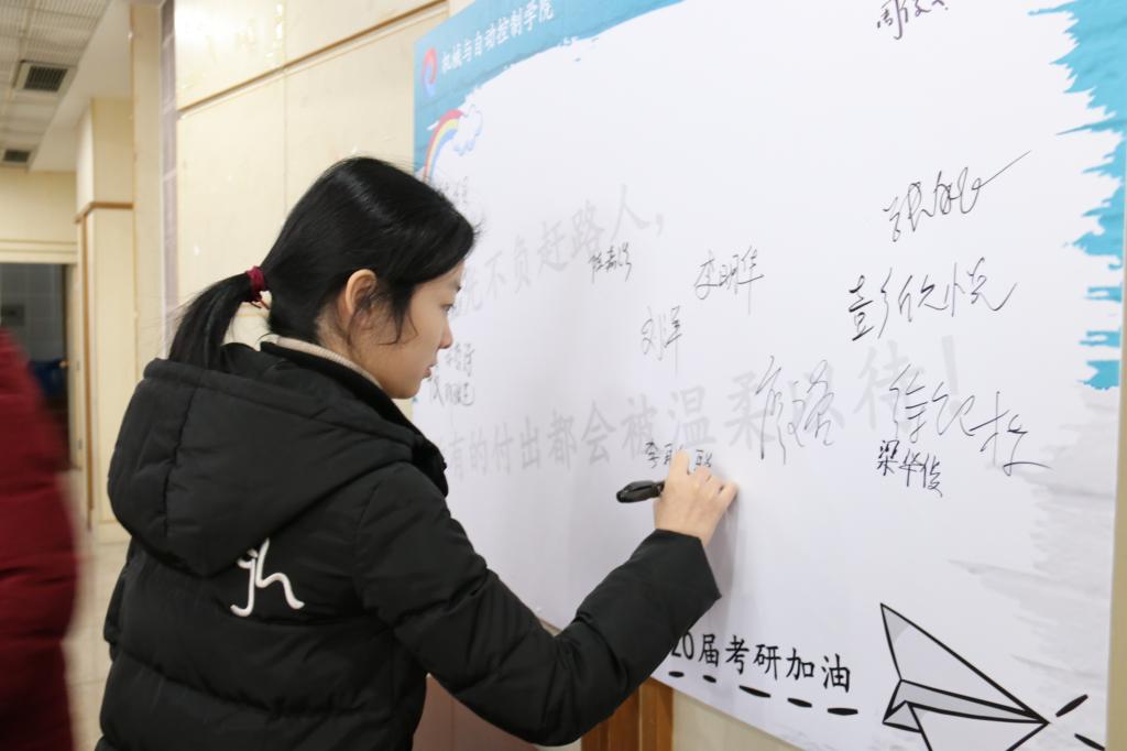 12月4日上午,机控博彩平台-10大博彩平台网 在活动中心5楼多功能厅成功举办2020届毕业生考研慰问激励大会。博彩平台-10大博彩平台网 副院长俞高红教授,博彩平台-10大博彩平台网 党委副书记王吴芳以及16级辅导员房维维、王淯霄出席。会议由王淯霄主持。现场近300考研学子到场,他们纷纷在考研墙上签名。