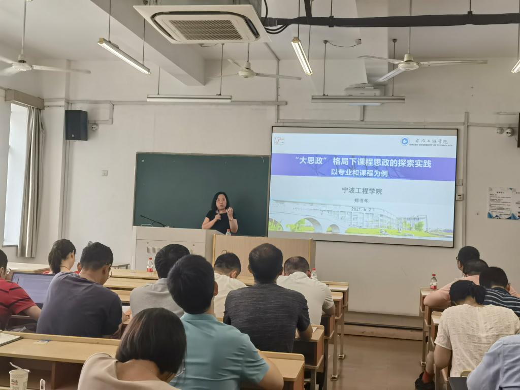 会上,郑书华教授首先介绍了课程思政的时代背景,随后在探索实践方面提出了如何构建课程思政教学体系及课程思政建设的举措,通过课程建设过程中的经验和思考,讲述了如何在专业课中融入思政教育的体会和具体做法,最后郑教授分享了自己的课程思政案例。
