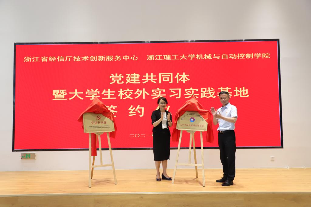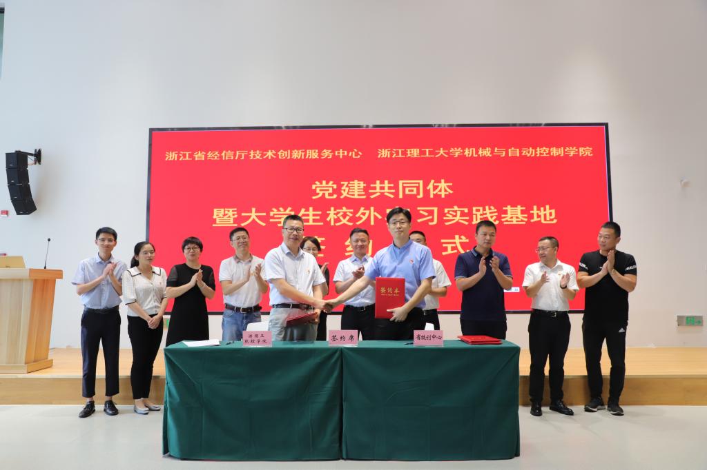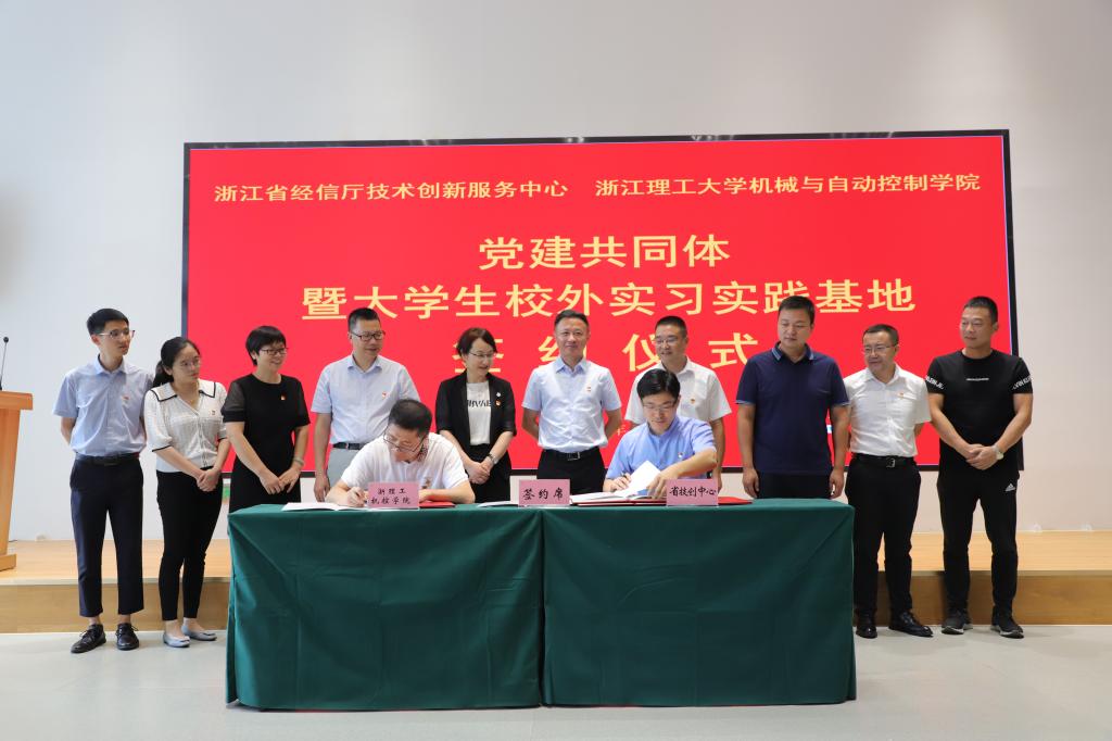 和浙江省技术创新服务中心党建共同体暨大学生校外实习实践基地签约仪式在白塔·浙江省全球精准合作服务综合体举行。省经信厅党组成员、副厅长盛勇军,校党委副书记姚珺出席会议并作讲话,会议由浙江省技术创新服务中心副主任王栋主持。省技术创新服务中心主任徐吉成、白塔综合体企业家代表、校相关职能部门领导、机械与自动控制博彩平台-10大博彩平台网
