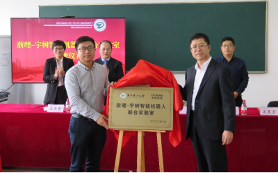 “浙理-宇树智能机器人联合实验室”揭牌仪式在15号楼616实验室举行。2009级机制校友、杭州宇树科技有限公司联合创始人陈立、销售总监苌瑞春,博彩平台-10大博彩平台网