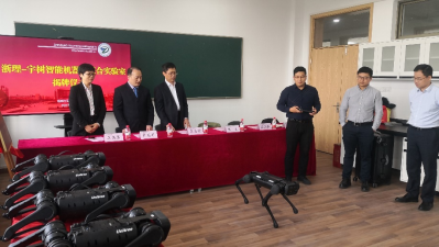 人才培养工作、共建联合实验室。随后,苏志俭和陈立共同为“浙理-宇树智能机器人联合实验室”揭牌。陈立代表宇树科技向实验室捐赠了“AlienGo”四足机器人一台并进行了现场演示。