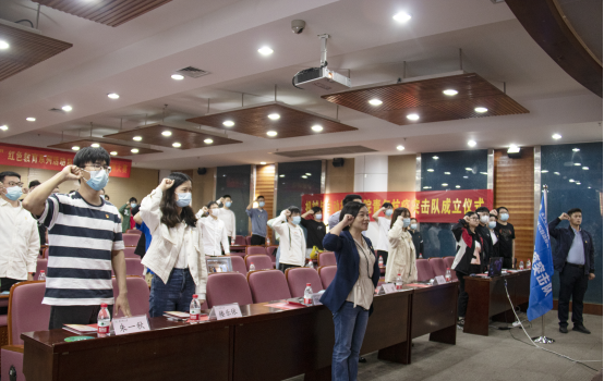 成立青年抗疫突击队。陆秋萍为“青年抗疫突击队”授旗。突击队队员代表沈文浩作表态发言,全体突击队成员集体宣誓。党旗所指,团旗所向,不负韶华,不负时代,用行动践行入党初心,用态度回答入党使命,勇于担当,奋力拼搏,不负民族与国家的重托,在青春的赛道上跑出机控青年的最好成绩。