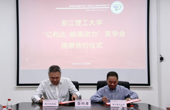 发展的大力支持。张俊代表企业和浙江理工大学签署了《浙江理工大学“亿利达-能源动力”奖学金捐赠协议书》。