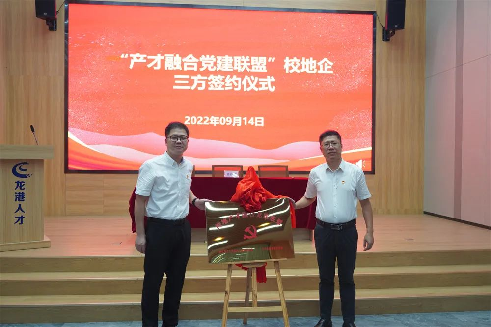 董敢部长与苏志俭书记共同为校地企“产才融合党建联盟”揭牌