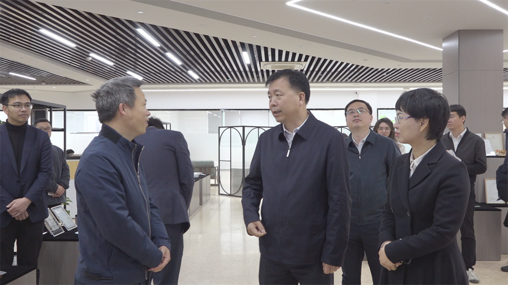 张振丰一行在彭来湖的带领下实地参观了龙港研究院产品展示区、分析检测中心,认真听取了彭来湖关于龙港研究院的工作进展汇报,重点了解平台建设发展、科研成果转化等方面的优势和成果。