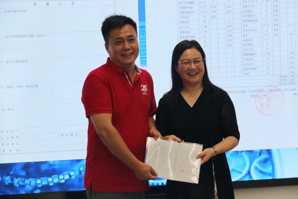 时光荏苒,岁月如梭,我们怀念过去的青春岁月,也期待共谋美好未来。在这个特殊而难忘的时刻,高丽静老师和程叶老师以“辅导员、班主任再一次点名”的形式,为校友们分发学籍卡、成绩单。学籍卡和成绩单是一张张承载着浓厚师生情怀的纪念物,它记录着校友们曾经在母校度过的美好时光,见证了校友们的努力与成长。这张小小的卡片蕴含着深深的情感和无尽的回忆。