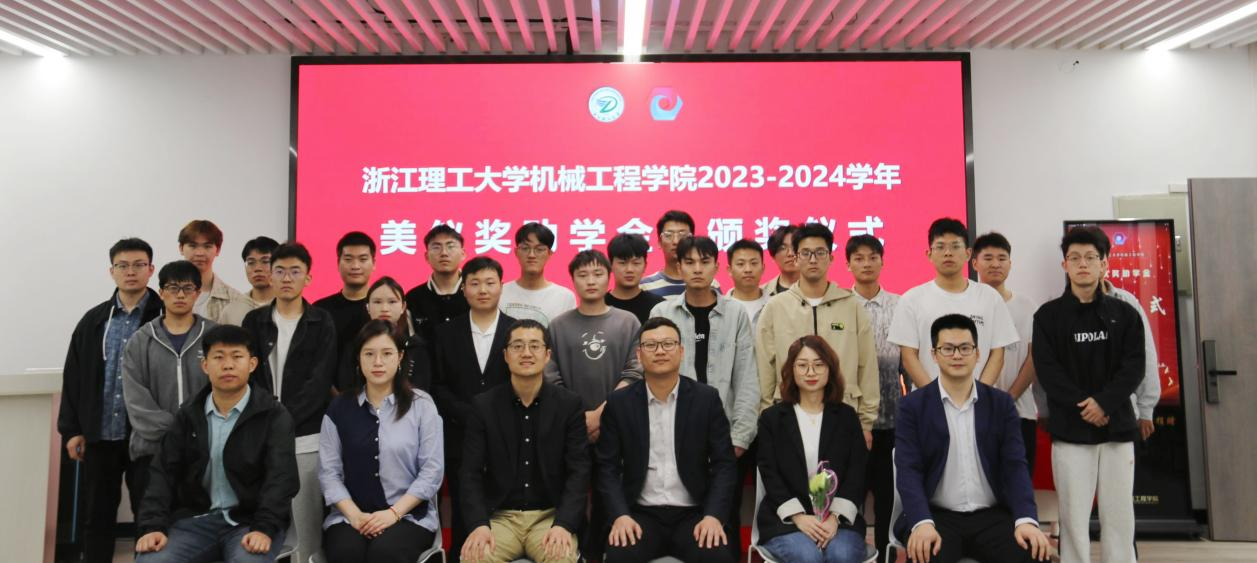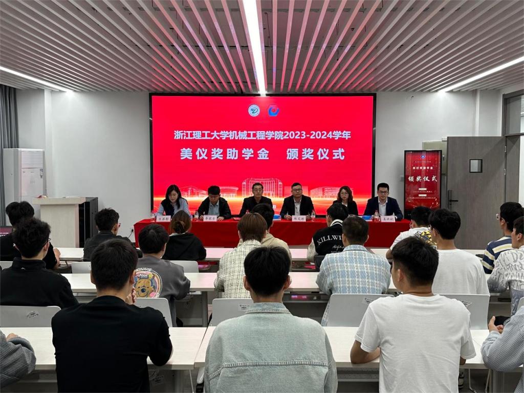 2023-2024学年美仪奖助学金颁奖仪式在15号楼102举行。杭州美仪自动化技术股份有限公司总裁助理兼采购总监、08级机械设计制造及其自动化专业校友陈定游,人力资源总监吴洁,市场总监、11级机械设计制造及其自动化专业校友姜洪斌,机械工程博彩平台-10大博彩平台网