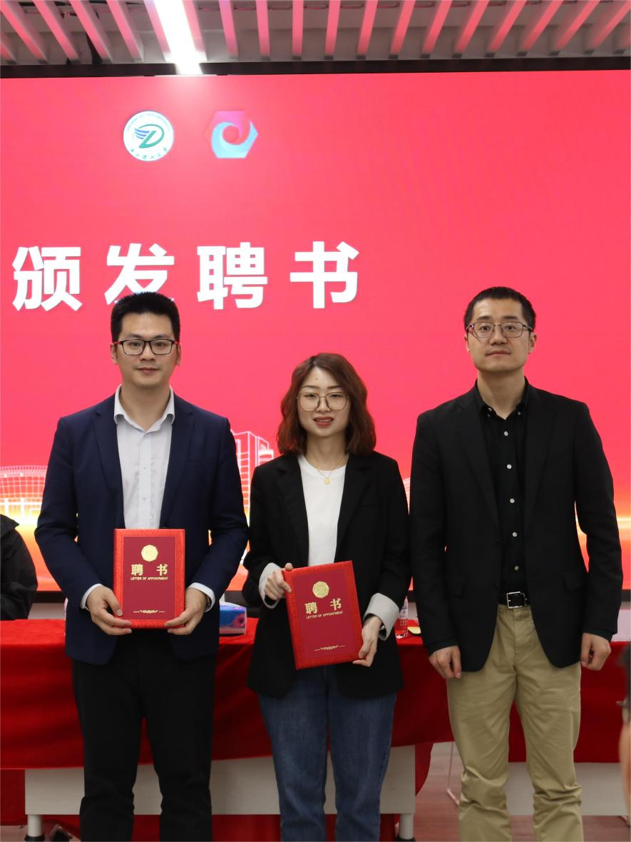 增聘吴洁、姜洪斌分别担任“学生成长导师”和“校友导师”,由严博为两位颁发聘书。