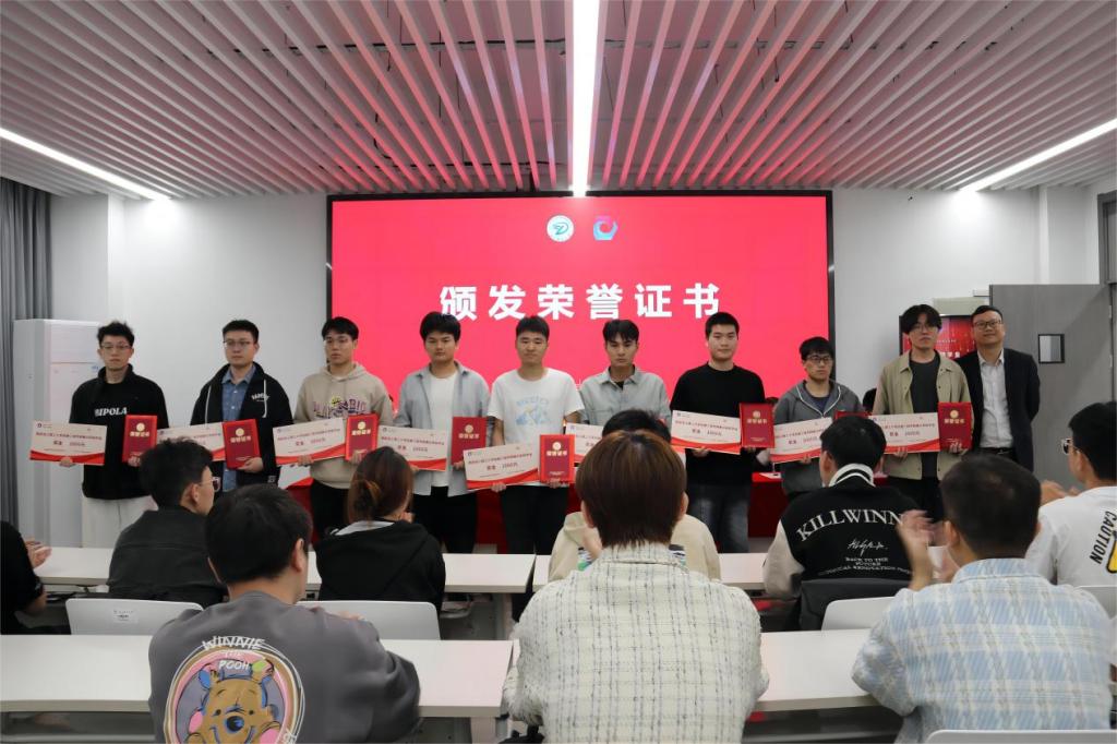 随后,由陈定游、吴洁、姜洪斌为获奖同学颁发荣誉证书。