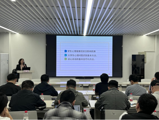 邀请校心理健康教育中心专职教师、心理学博士、心理学专业硕士研究生导师陆雯教授,为班主任和辅导员老师开展心理健康教育专题培训。陆雯从学生心理健康现状及影响因素、大学生心理问题识别基本方法和谈心谈话的基本技巧与方法三个方面讲解了心理健康教育工作的基本方法和路径。