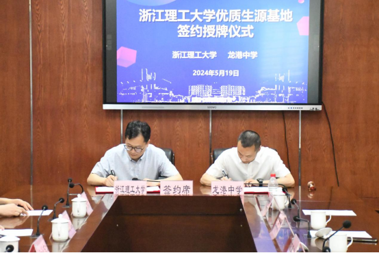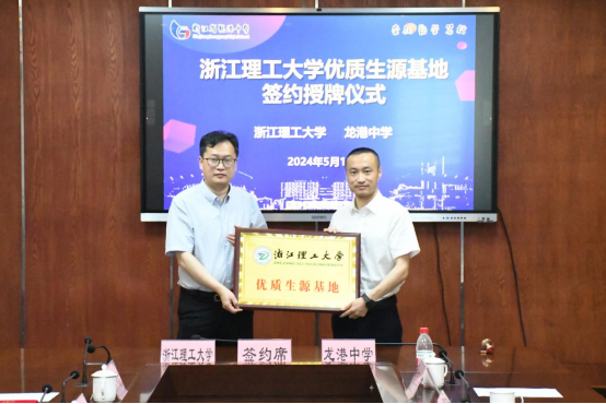 与中学的交流合作,共同培养优秀人才,5月19日上午,浙江理工大学“优质生源基地”签约授牌仪式在浙江省龙港中学举行。校党委副书记缪鲁加,浙江省龙港中学副校长黄通友、吴声文等人参加仪式。