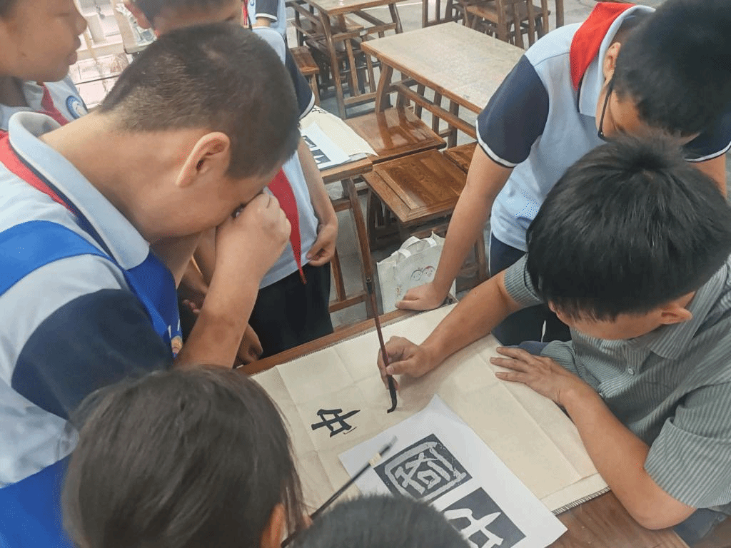 在六一儿童节到来之际,为进一步传承弘扬书法文化,培养学生良好书写习惯,感受汉字魅力,5月30日下午,“美塘”宣讲团指导老师李家乐带队走进上城区筑英小学,为小朋友带来了一堂生动活泼的“墨香书法情·壮我少年心”书法小课堂活动。