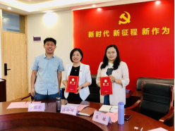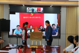 魏伟为浙江理工大学“学林”爱心图书角揭牌,聘请陆秋萍、朱敏担任少先大队校外辅导员,由李家乐代颁聘书。