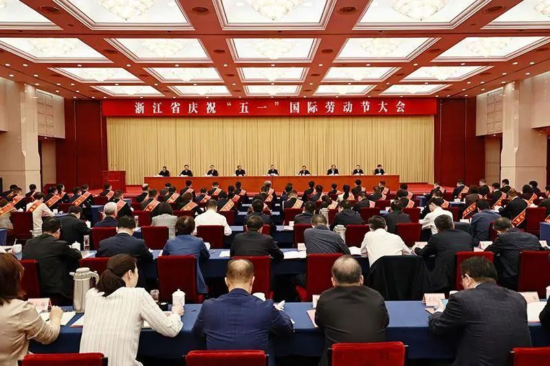 4月29日上午,浙江省庆祝“五一”国际劳动节大会在浙江省人民大会堂举行。