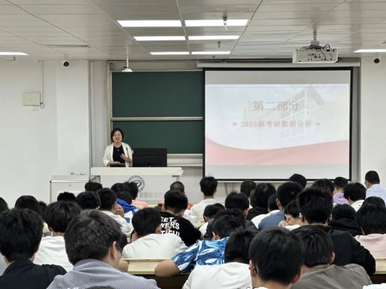 2025届本科生考研情况,她为同学们提供全面客观的参考依据和考研指导。她表示考研是对大学学业的检验,也是一场成长历练,希望同学们准确定位,精准复习,明确目标,坚持到底。