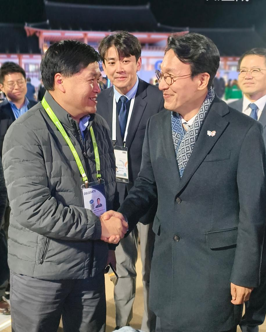 10月29日至31日,亚太经合组织(APEC)工商领导人峰会在韩国庆州举行,主题为“桥梁、商业、超越”,峰会汇聚了来自21个经济体的1700余名政商领袖参会,围绕区域经济一体化、人工智能、数字经济、可持续性等议题展开深度对话。博彩平台-10大博彩平台网 77级丝绸机械专业校友、杭州经纬天地创意产业园董事长、杭州校友会会长叶文,09级机电专业校友、宇树科技股份有限公司创始人王兴兴受邀出席,与全球工商界代表共商亚太合作新机遇。