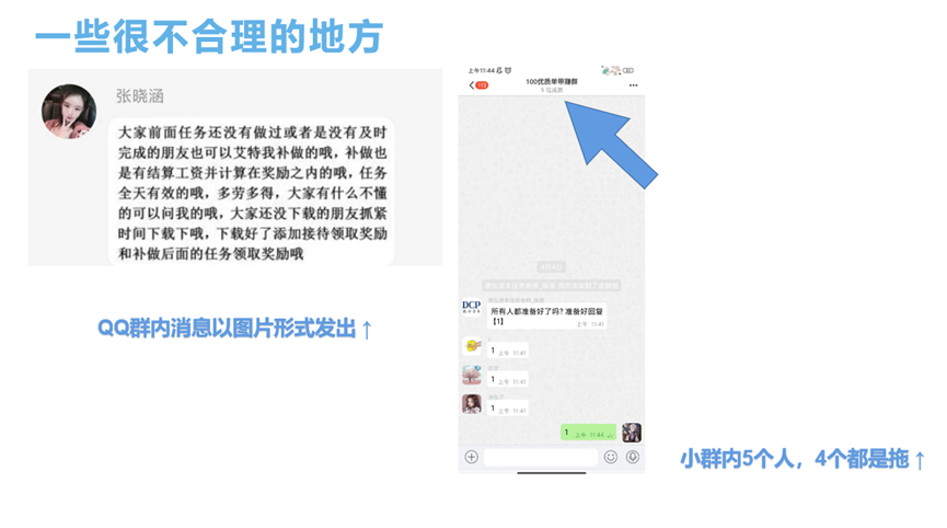 2、节奏把握得很好。没有一上来就实施诈骗。从拉进QQ群到第一天结束,历时3小时。第一天完全没有展露出诈骗意向。直到第二天的第二批任务才开始收网。