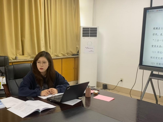 党委组织员万苏影做党支部标准化建设培训,重点围绕党支部标准化建设考核标准、组织生活、“三会一课”记录、党员发展等方面进行说明。