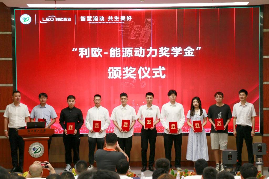 会上,浙江理工大学副校长郭玉海首先致辞,代表浙江理工大学对与会的利欧集团和相关企业人员的到来表示热烈欢迎,对浙江理工大学和利欧集团的校企深度合作表示高度认可。研究生院副院长徐阿进和利欧总裁办主任林仁勇为8位同学颁发了“2022-2023学年利欧-能源动力奖学金”。随后参与利欧深度合作的多位教师对合作成果进行了阶段汇报。利欧泵业产品管理部经理邱士军对校企合作产品进行发布,利欧泵业人力总经理梅宝平进行了利欧校招宣讲,最后利欧股份副总裁周晓礼对浙理利欧的校企合作以及本次活动进行了总结。会后利欧集团及企业相关人员前往15号楼114实验室参观试验台。